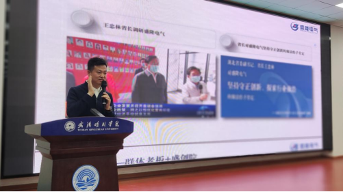“万亮,盛隆电气集团经理、湖北智控电力工程有限公司创始人、青年创业导师、优秀创业代表,曾创下了3天签下300万订单,4年签下40多个订单累计3000多万的业绩。毕业时,万亮以自己在校期间优异的学习积累和丰富的实践经历拿到盛隆电气Offer,在这里一干就是十多年。无论飞得有多高,走得有多远,万亮始终感恩母校,常常心归晴川,他心系学弟学妹成长发展,有很多职场感悟和经验与学弟学妹分享”,张老师向同学们详细介绍了万亮的成长轨迹与行业成就,让大家对这位从专业领域走出的优秀校友充满期待。