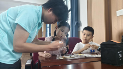 奕宇翔老师低头时,发梢扫过图纸的微响,和孩子们轻轻的呼吸声缠在一起。蓝T恤女孩试探着问“这样对吗?”,老师笑着调整零件,把鼓励融进动作里;格子衫女孩猛地举手,眼睛亮得像装了星星,要分享刚发现的“小秘密”。这一方小桌,装着教育最动人的温柔——把专业拆解成童真能听懂的语言,让探索,成为最甜的糖 。