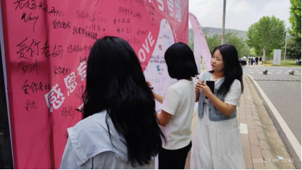 2025年5月9日,为深入学习贯彻党的二十大精神,大力弘扬中华优秀孝德文化,值母亲节之际,伟德(bevictor)官方网站在教学楼附近举办了感恩母亲主题活动。活动现场,师生们用文字传递对母亲的深情,在“母亲夸夸墙”上写下暖心话语,让初夏的校园洋溢着温暖与爱意。