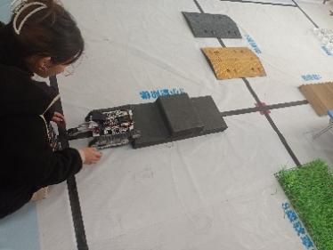 伴随着电机的启动声,本次比赛在轻松活跃的氛围中开始了,大赛共有13组队伍,各组队员团结协作,依次将设计调试好的机器人放在比赛场地上进行比赛