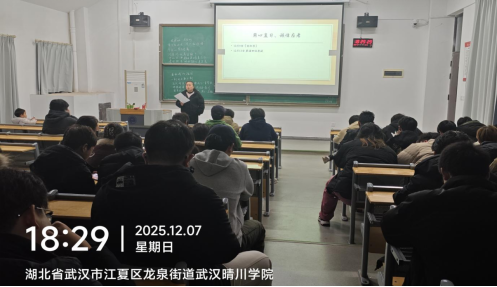 2025年12月7日18:00,2024级供用电专业全体学生以“安全冲刺期末,文明共向未来”为主题开展了第十五周班会,班会由肖明威老师主讲。聚焦安全、法治、学业、规划四维联动,用安全为期末护航,以文明为成长奠基,助力学生平安收官学业,昂首阔步迈向新年。在严守安全底线方面,肖老师复盘网络刷单、冒充客服、低息网贷等期末高发诈骗类型,组织全体同学齐背“五不”防诈口诀强化防范意识。同时肖老师重申宿舍“人走断电”要求,严禁私拉电线与使用大功率电器,现场发放用电自查表,明确12月9日前完成整改并拍照回传。在法制教育建设方面,肖老师围绕12月4日国家宪法日,组织全体学生开展宪法晨读、线上知识竞答活动,强化学生法治信仰与规则意识。在期末冲刺方面。刘老师启动“一帮一”学业帮扶计划,共享期末冲刺课程、开放自习室答疑通道,并安排四六级全真模考,12月10日统一组织演练。同时肖老师严明考纪,明确作弊后果,要求全体同学12月5日前签署《诚信考试承诺书》。