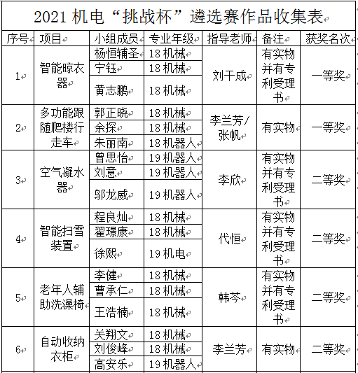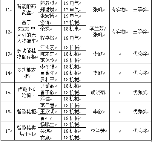 听取每组参赛代表的讲解与演示后,四位评审老师通过上交的作品申报书和说明书,仔细探讨后,最后获奖名单如下: