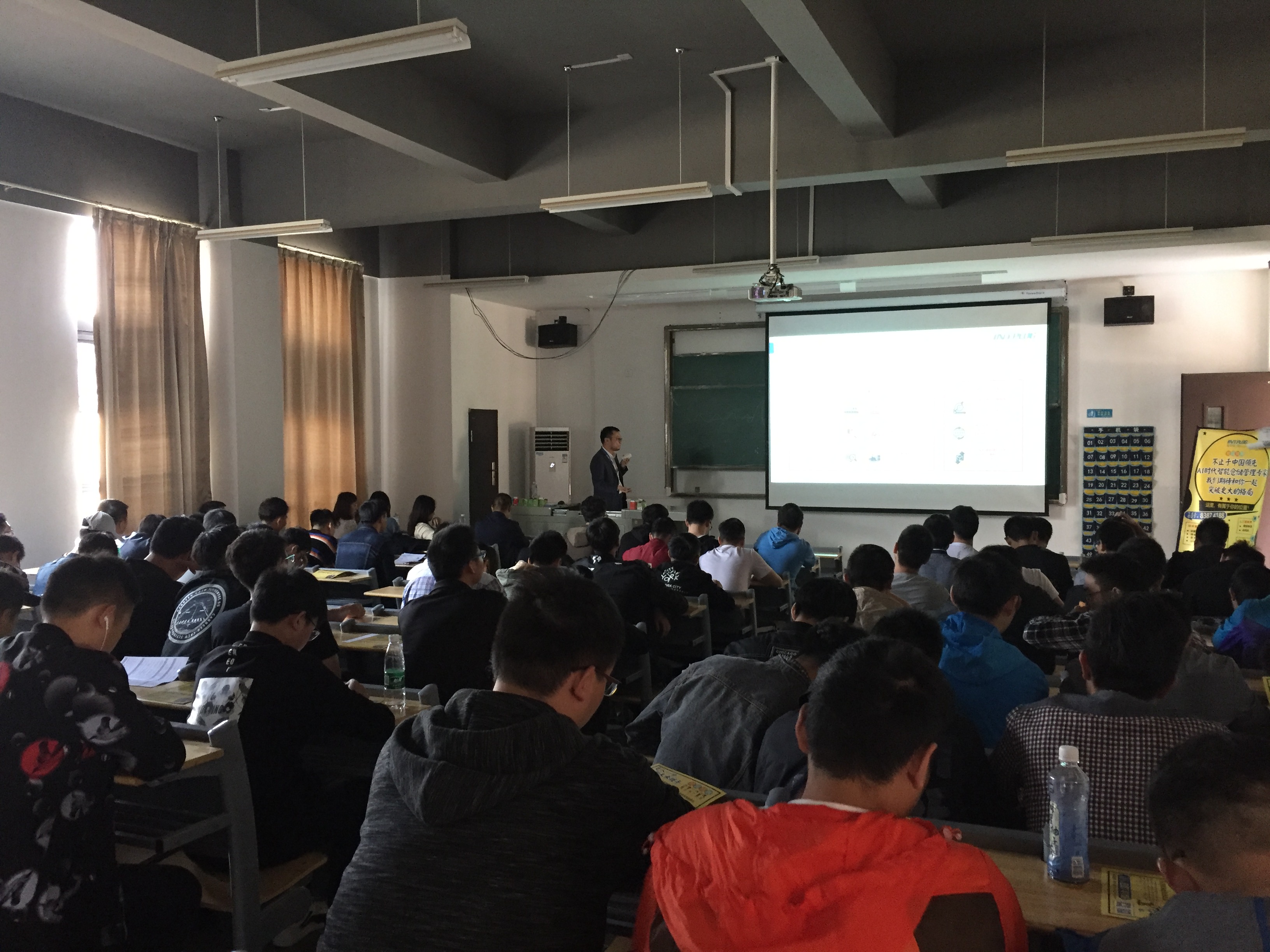 金秋时节,秋高气爽。2018年10月31日下午两点半北京普罗格科技股份有限公司来到武汉晴川学院教三304教室,给电气工程学院2019届准毕业生进行了一场生动详细的实习就业宣讲会,此次宣讲主要针对电气工程及其自动化专业和物流管理专业的应届毕业生。电气工程学院丁坚勇院长、党总支副书记李勇老师、实训专业老师张洪华老师及2015级学生辅导员黄鹏老师积极参与了动员和组织宣传工作。