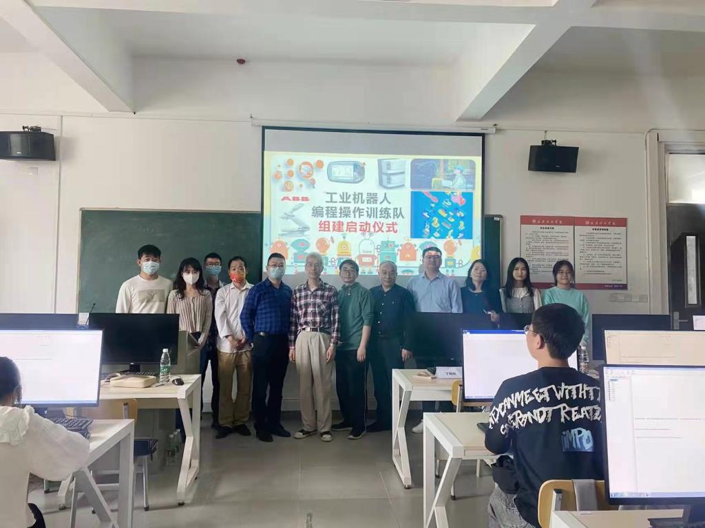 2022年3月16日中午12点半,伟德(bevictor)官方网站院长丁坚勇、机械电子工程系主任饶恕参加了由武汉金石兴机器人自动化工程公司举办的工业机器人编程操作训练队组建启动仪式。