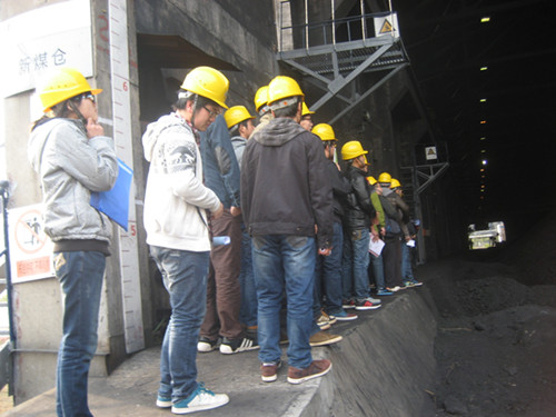 在学习完安全规则后,王工带领着大家参观电厂的生产过程,从氢气及各种危险物料的生产存储区,再到煤矿的运输存放区,路过高高的排气塔和塔边的脱硫脱硝设备,看着煤块从传送带进入轰隆的碎煤机,最后我们进入了集控室,在一个百平米的房间里,看着那些煤块在这样一个高六十米的建筑里先是进入燃烧室将生物能转化为热能再转化为机械能,最后变成千家万户可以使用的电能。