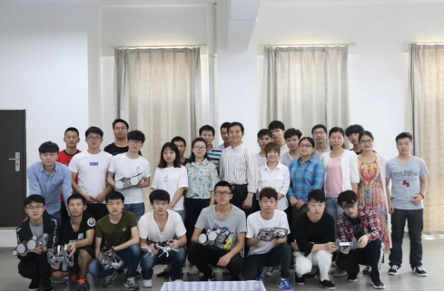 图为 彭致远(第二行左二)与校国旗班成员合影